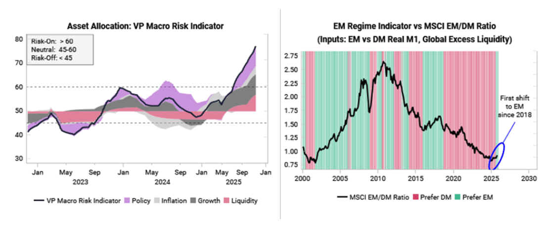 For asset allocation, cyclical regime models still prefer EM over DM. Macro risk models suggest 6m outlook favorable for risk assets.