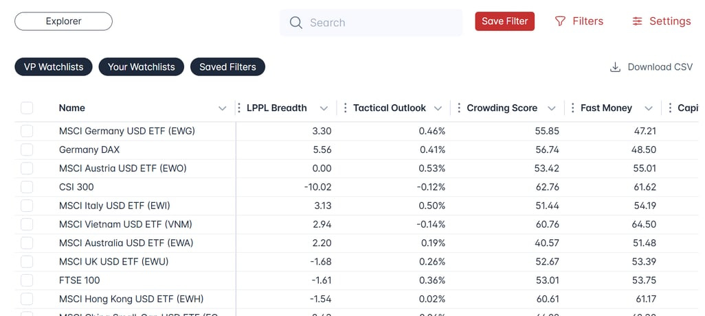 Select multiple assets to compare and chart with our proprietary models and scores.
